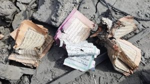 آنجا، قرآن کریم سوخته و پراکنده بر بام افتاده بود، باز بر آیاتی که قلب را آرام میکردند: