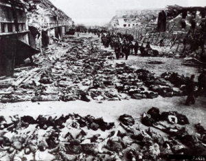 اجساد قربانیان کشتار دستهجمعی «طنطوره» پیش از دفن آنها در دو گور دستهجمعی